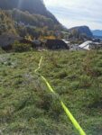 Aufgabe für die Besatzung der Pumpe 1 Bruderhof war es an der Glockmühlstraße am Alterbach eine Saugstelle mit einer Fox 4 einzurichten und über 200 Meter und 40 Höhenmeter das benötigte Löschwasser zur Pumpe der FF Ebenau zu transportieren.