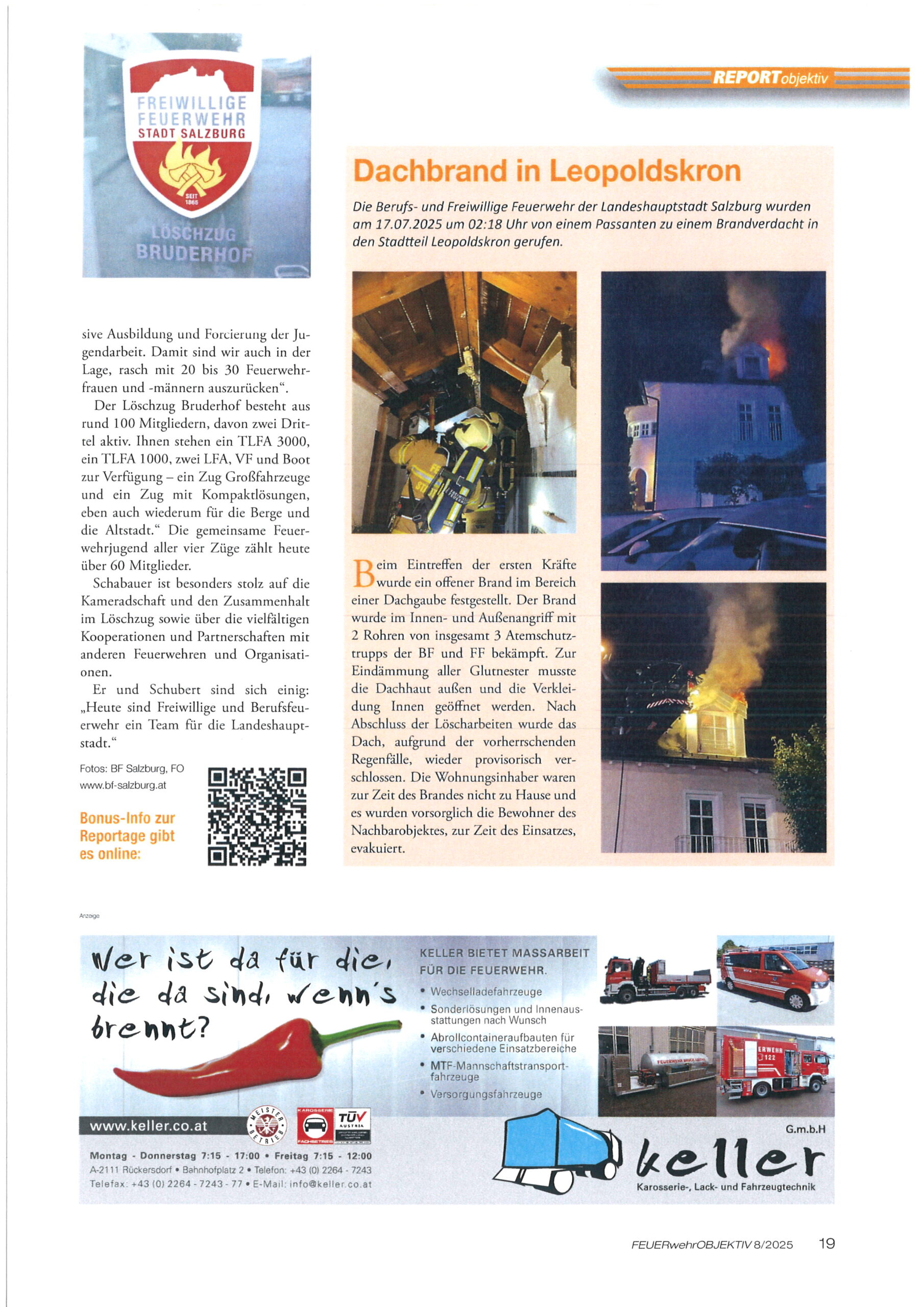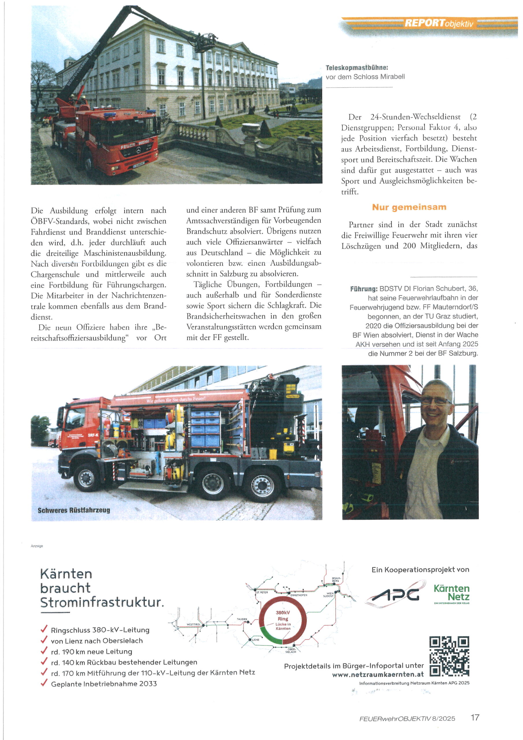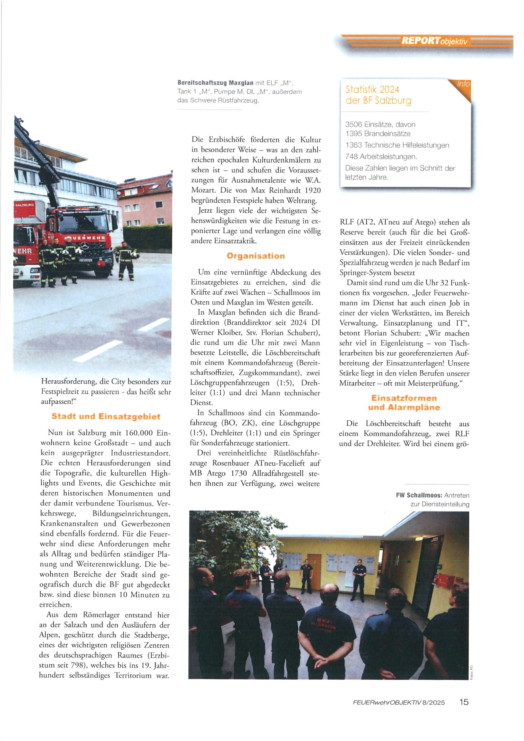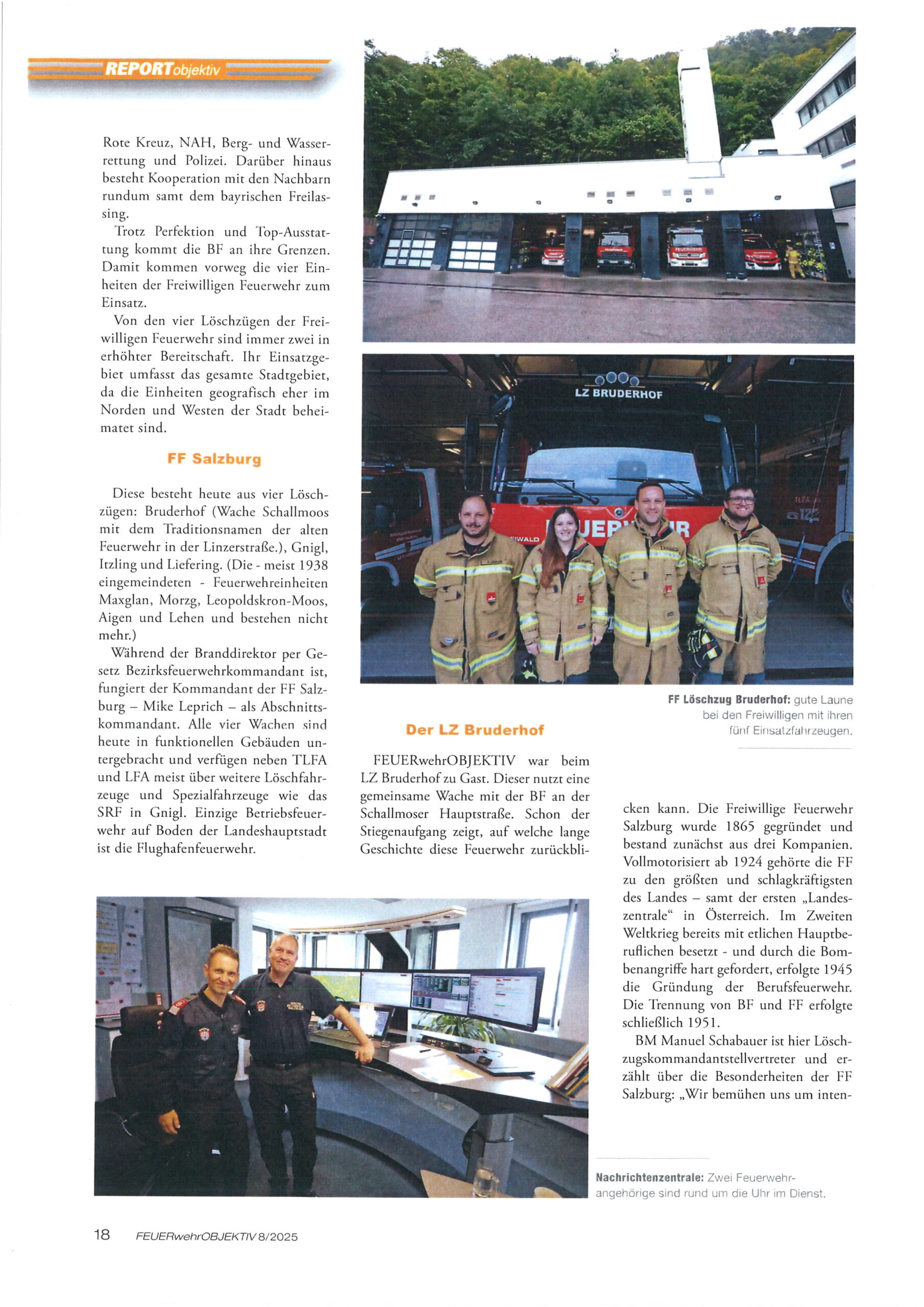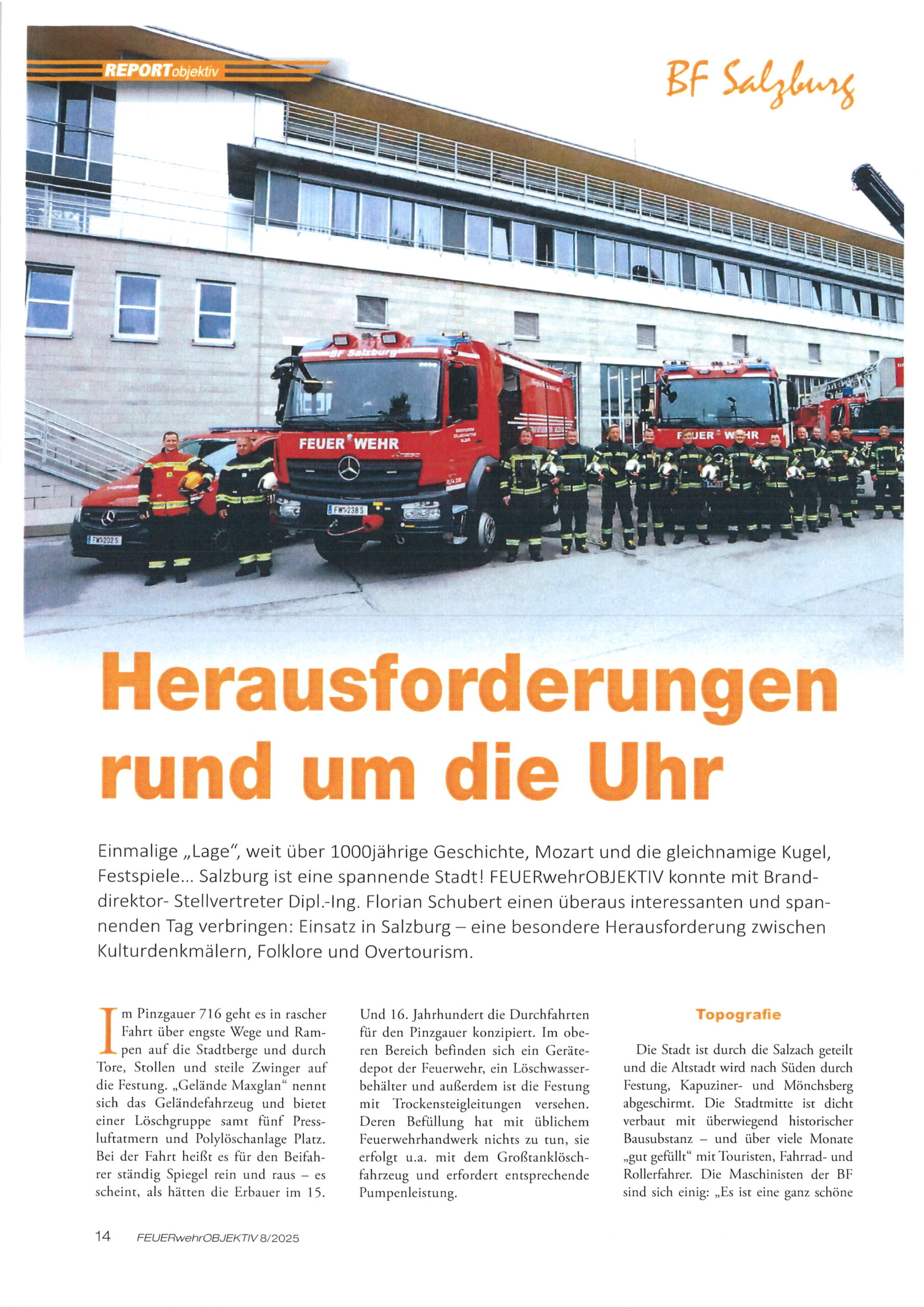 Zum Jahreswechsel 2025/2026 veröffentlichte das Feuerwehr Fachmagazin ” Feuerwehr Objektiv ” einen umfassenden Bericht über die Feuerwehr der Stadt Salzburg. Sehr ausführlich werden hier die Arbeiten und die Aufgaben der Berufs- und Freiwilligen Feuerwehr der Stadt Salzburg beschrieben.