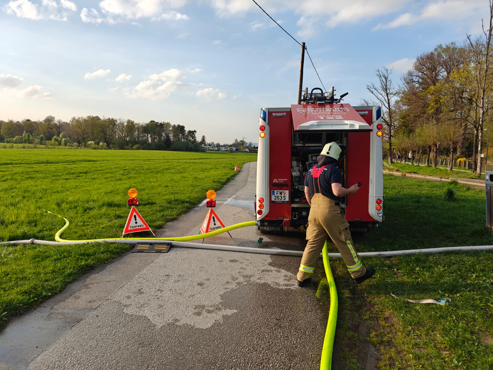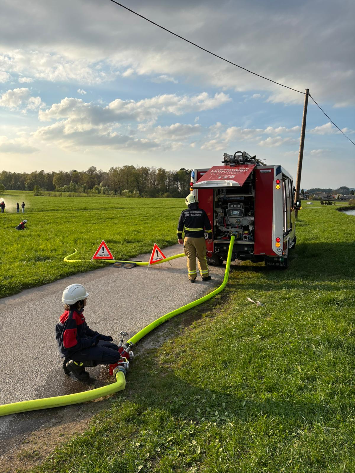 Am Almkanal in Gneis, in der Nähe der ehemaligen Praxmayermühle, begannen wir wieder mit der praktischen Ausbildung für unserer Feuerwehrjugend.