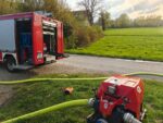 Mit der Tragkraftspritze der Pumpe 2 Bruderhof, wurde an der Alm eine Saugstelle eingerichtet. Von dort wurde dann eine Zubringleitung zu Tank 2 Bruderhof gelegt. Zugleich wurde eine direkte B Leitung zu einem Verteiler vorgebracht und dann 3 C Rohre für einen Löschangriff in Stellung gebracht.