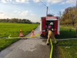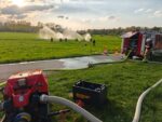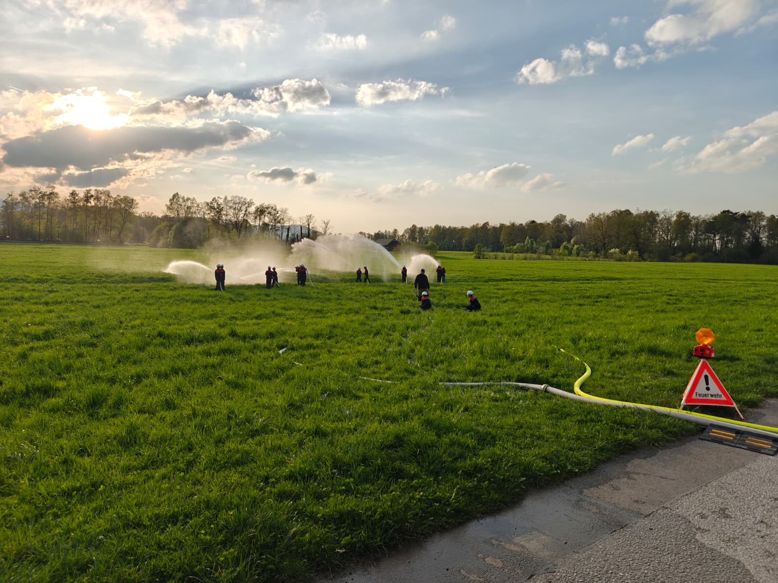 Die Jugendlichen wurden von ihren Ausbildern in die Handhabung der Wasserförderung und in das richtige Führen eines Strahrohres, sowie in die Wichtigkeit der Verkehrssicherheit an der Einsatzstelle eingewiesen.