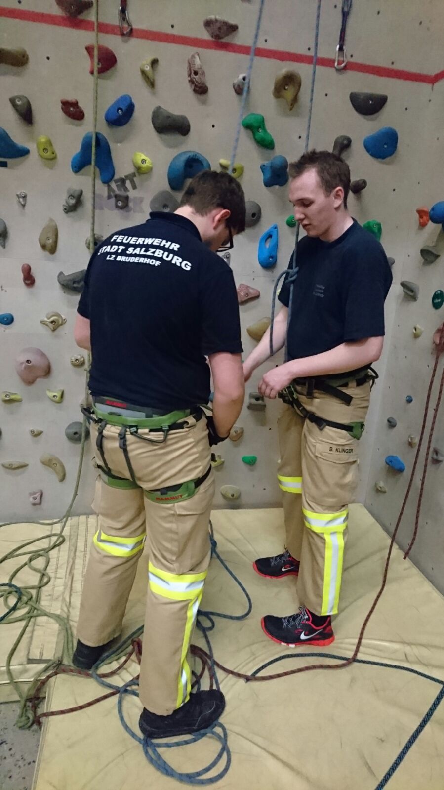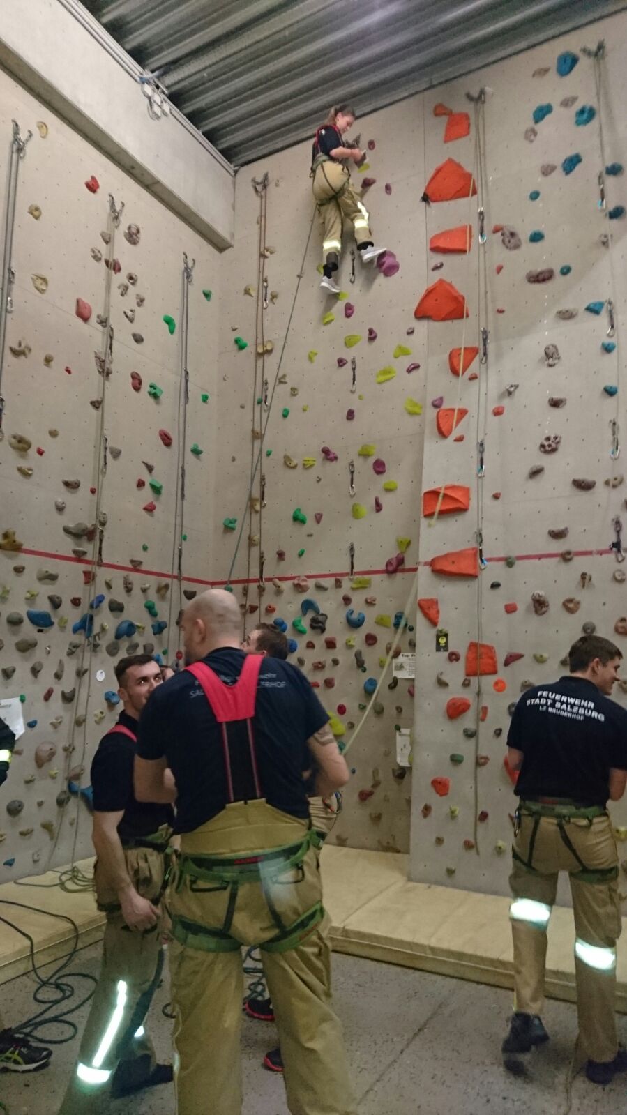 Beim ersten Schulungsdienst im Februar ging es in die Kletterhalle nach Itzling und wir konnten hier sehr ausgiebig die Eigensicherung von Kameraden in der Kletterwand üben, auch konnten sich die Teilnehmer beim Klettern versuchen.