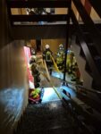 Mit Atemschutztrupps ,wurde hier die Brandbekämpfung und die Evakuierungen von Wohnungen unterhalb und oberhalb  der Brandwohnung, unterstützt.