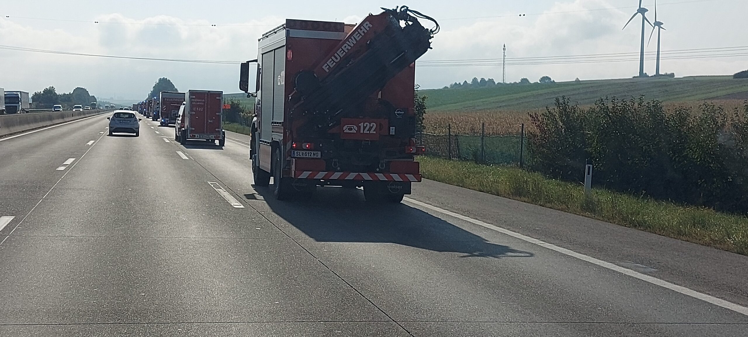 Zu dieser Zeit trafen sich LAST Bruderhof und Bus KDO mit Unterstützungskräften aus den Löschzügen Bruderhof, Gnigl und Itzling, um sich wieder auf den Weg zu machen nach Perschling, die eigenen Kräften nach Hause zu holen.