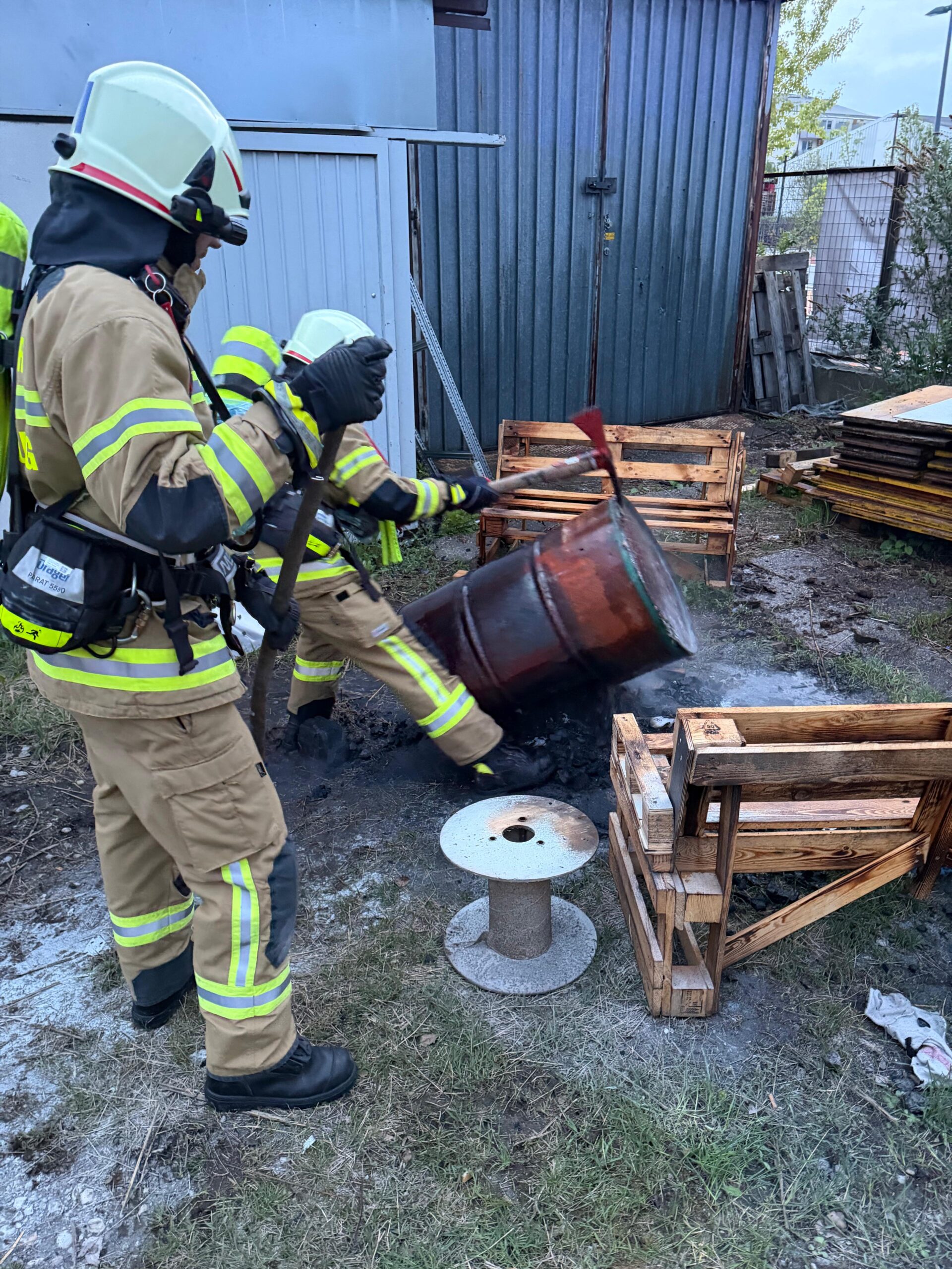 Eine unbekannte Person hatte in einem Fass Papiermüll verbrannt und dabei sind auch Spraydosen in den Flammenbereich gekommen. Diese sind natürlich explodiert und haben den Brand ausgebreitet.
