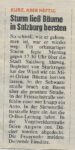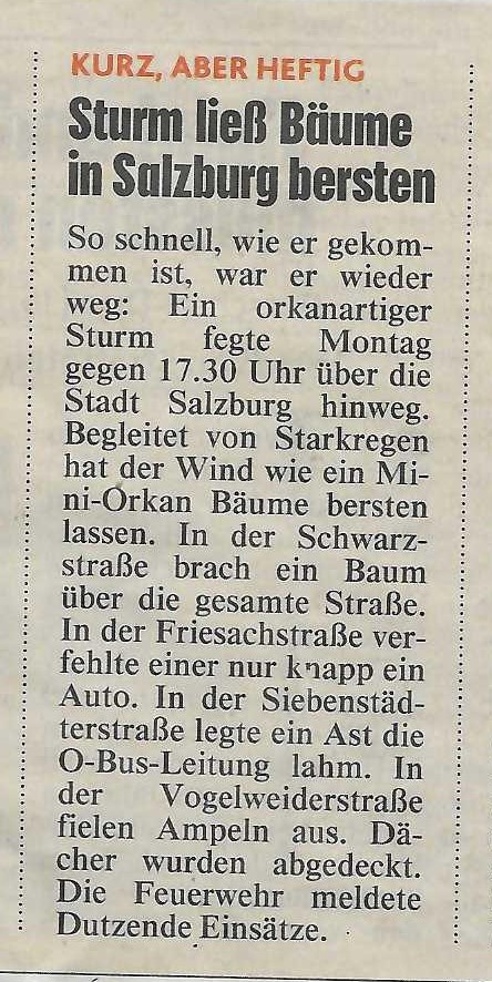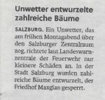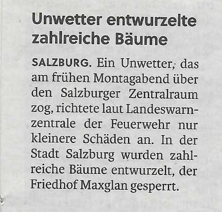 Kurz und knackig war das Sturmtief das um ca. 17 Uhr 30 über die Stadt Salzburg gezogen ist. Ein Spur der Verwüstung zog sich durch die Stadt. Viele Äste wurden abgerissen, Bäume geknickt. Diese versperrten dann die Gehwege und die Straßen.
