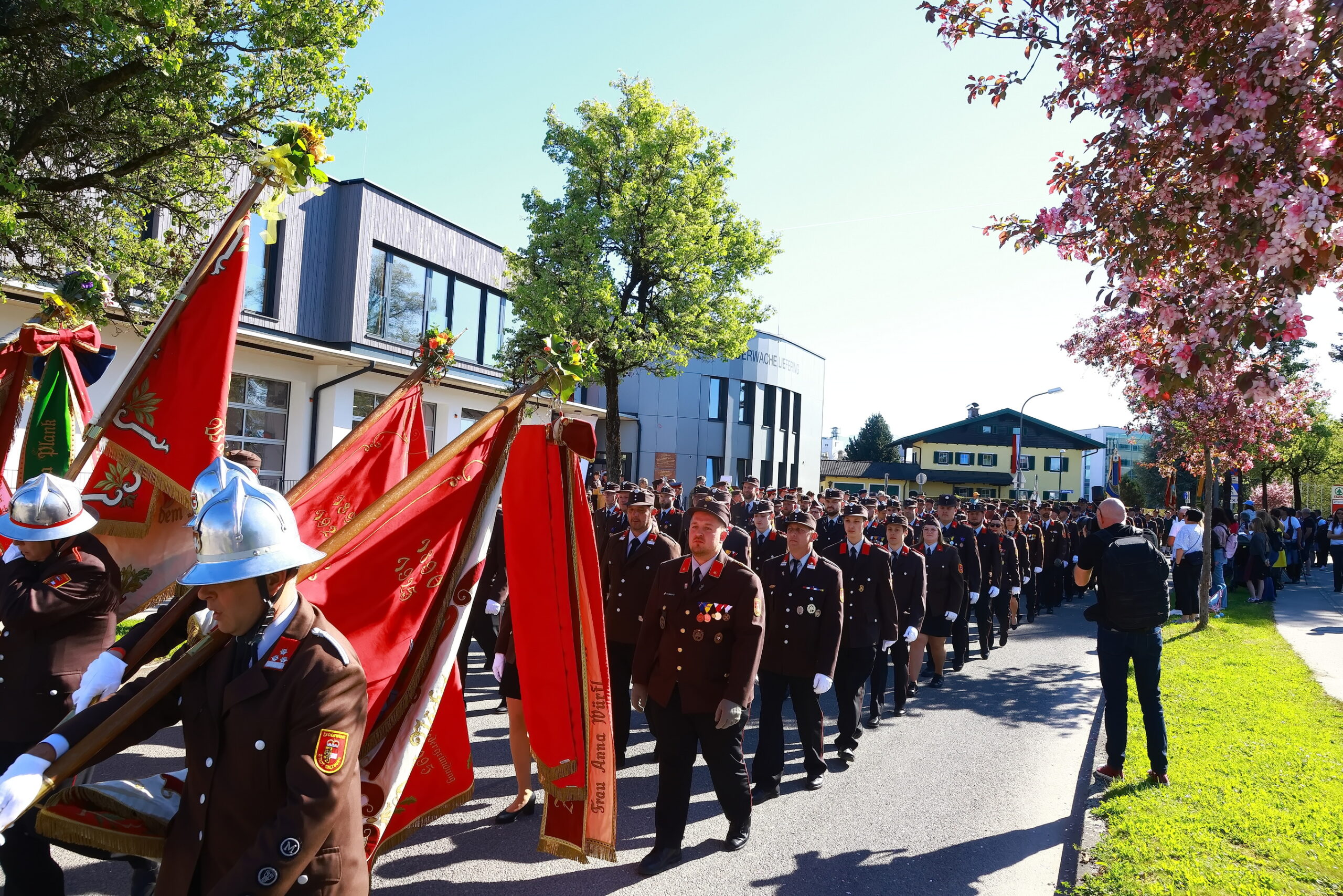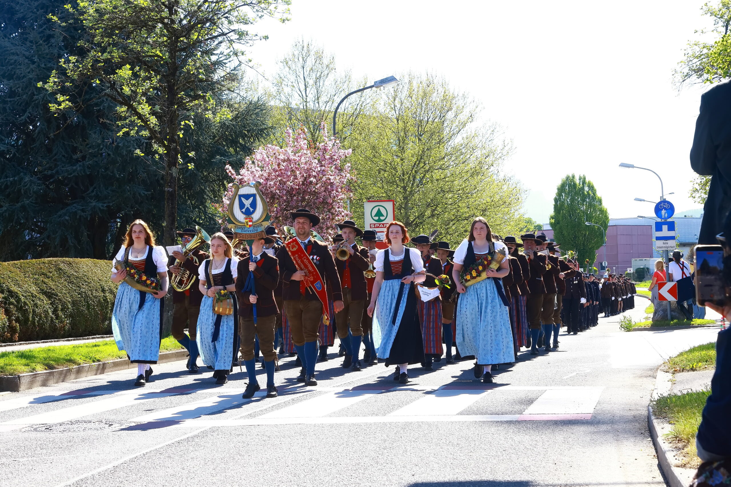 Begleitet von der Fischermusik Liefering setzte sich der  Marschblock mit fast 200 Teilnehmern für einen sehr kurzen Weg in Bewegung. Etliche Abordnungen der Lieferinger Vereine schlossen sich dem Marschblock an .