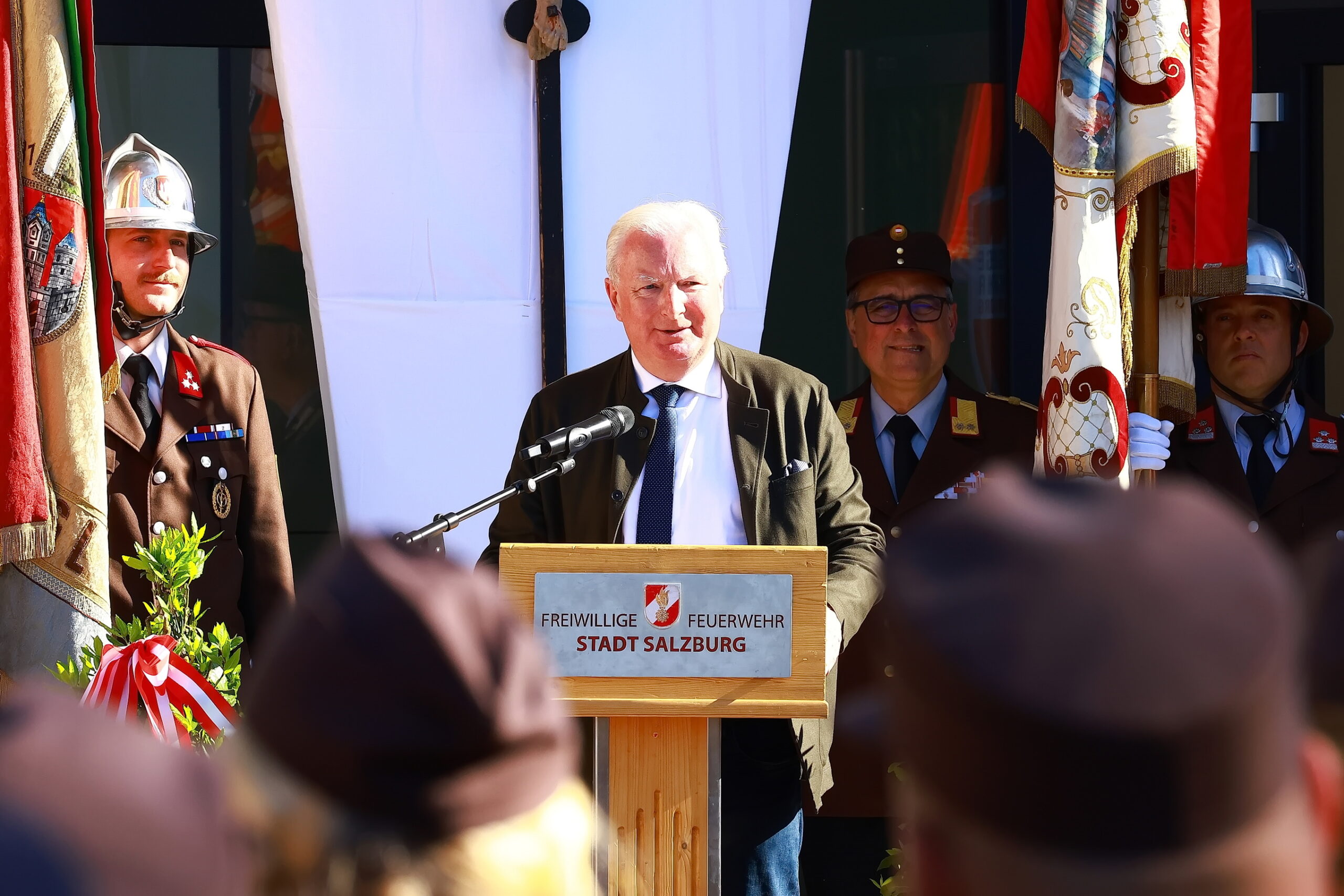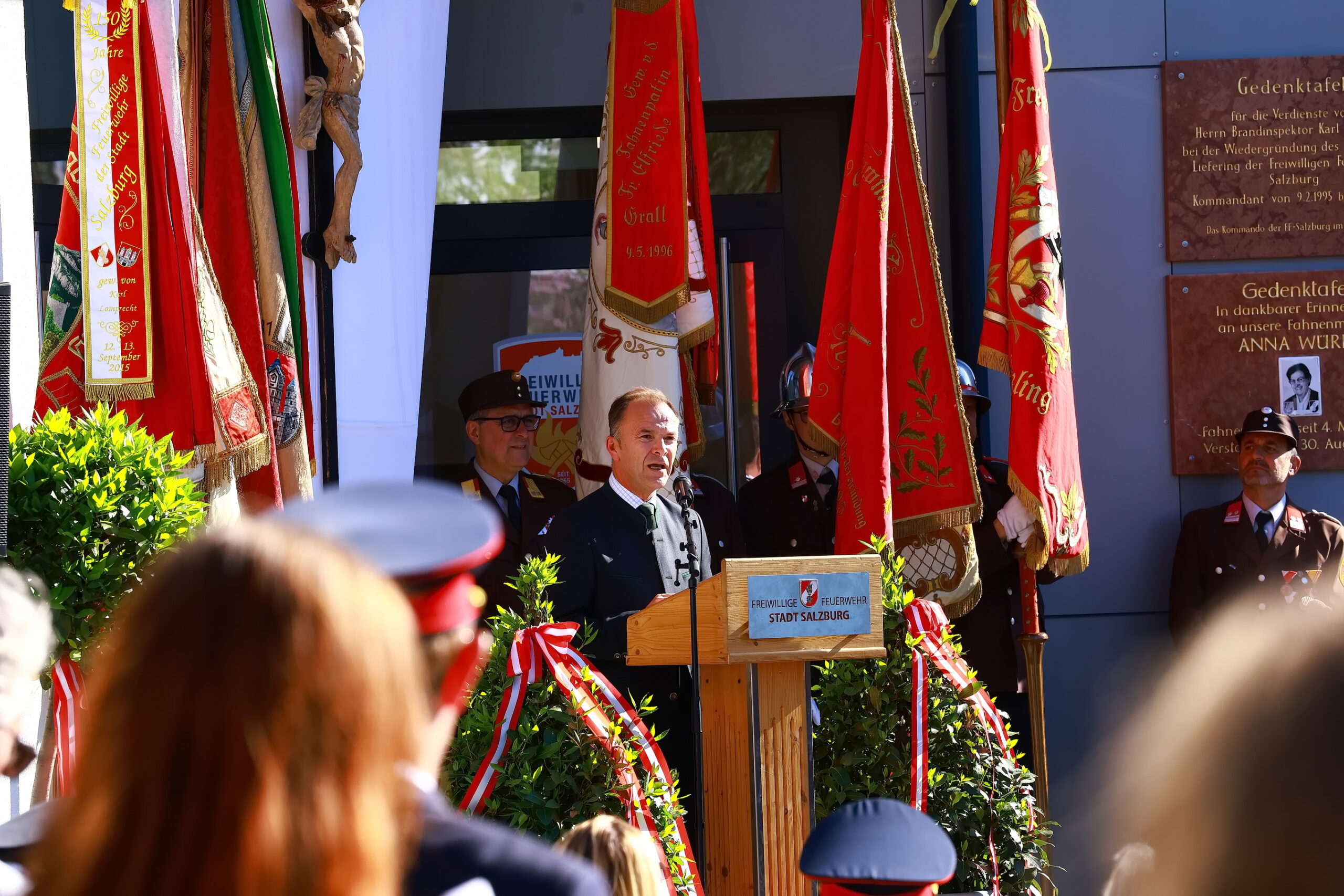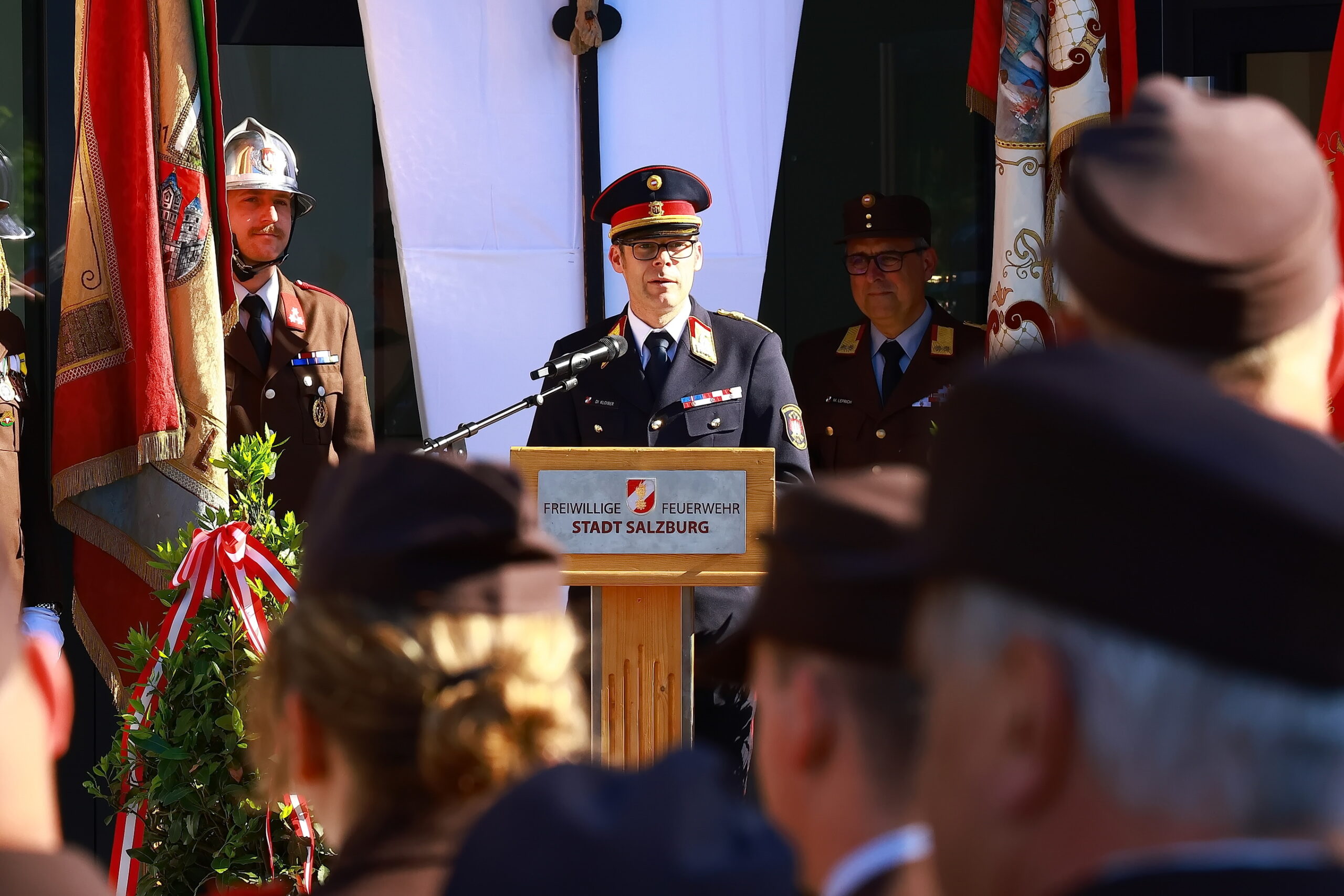Unter den interessierten Zuhörern waren auch zahlreiche Ehrengäste. Bürgermeister Bernhard Auinger und sein Stellvertreter Dr. Florian Kreibich gaben  die Ehre. Bezirksfeuerwehrkommandant und Kommandant der Berufsfeuerwehr der Stadt Salzburg BD DI Werner Kloiber kam gemeinsam mit seinen Offizieren. Weiters konnten wir zahlreiche Vertreter befreundeter Einsatzorganisationen ( Polizei, Rotes Kreuz, Höhlenrettung ) bei unserem Feste begrüßen.