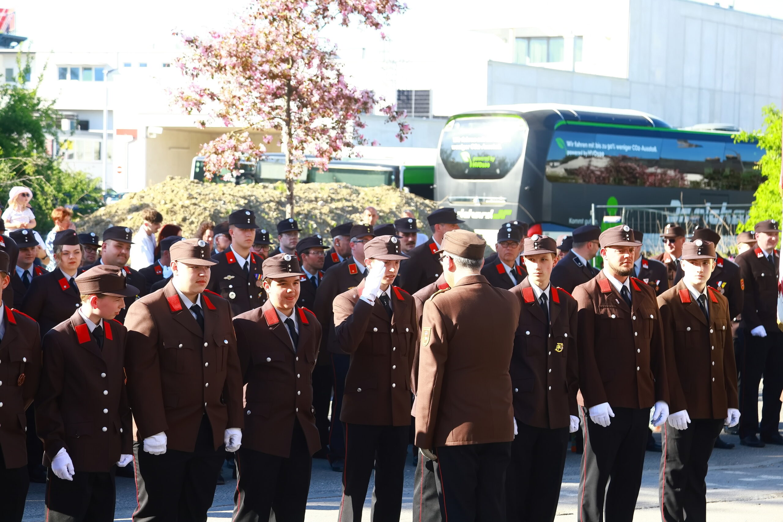 Der Marschblock nahm direkt vor der frisch renovierten Zeugstätte des Löschzuges Liefering Aufstellung. Hier legte der Kommandant der Freiwilligen Feuerwehr BR Mike Leprich seinen Rechenschaftsbericht ab. Er konnte hier auf über 38.000 geleisetet Stunden verweisen und die Einsätze von 2025 in Erinnerung rufen. Der LZ Bruderhof hat hier mit über 12.000 Stunden seinen Beitrag geleistet.