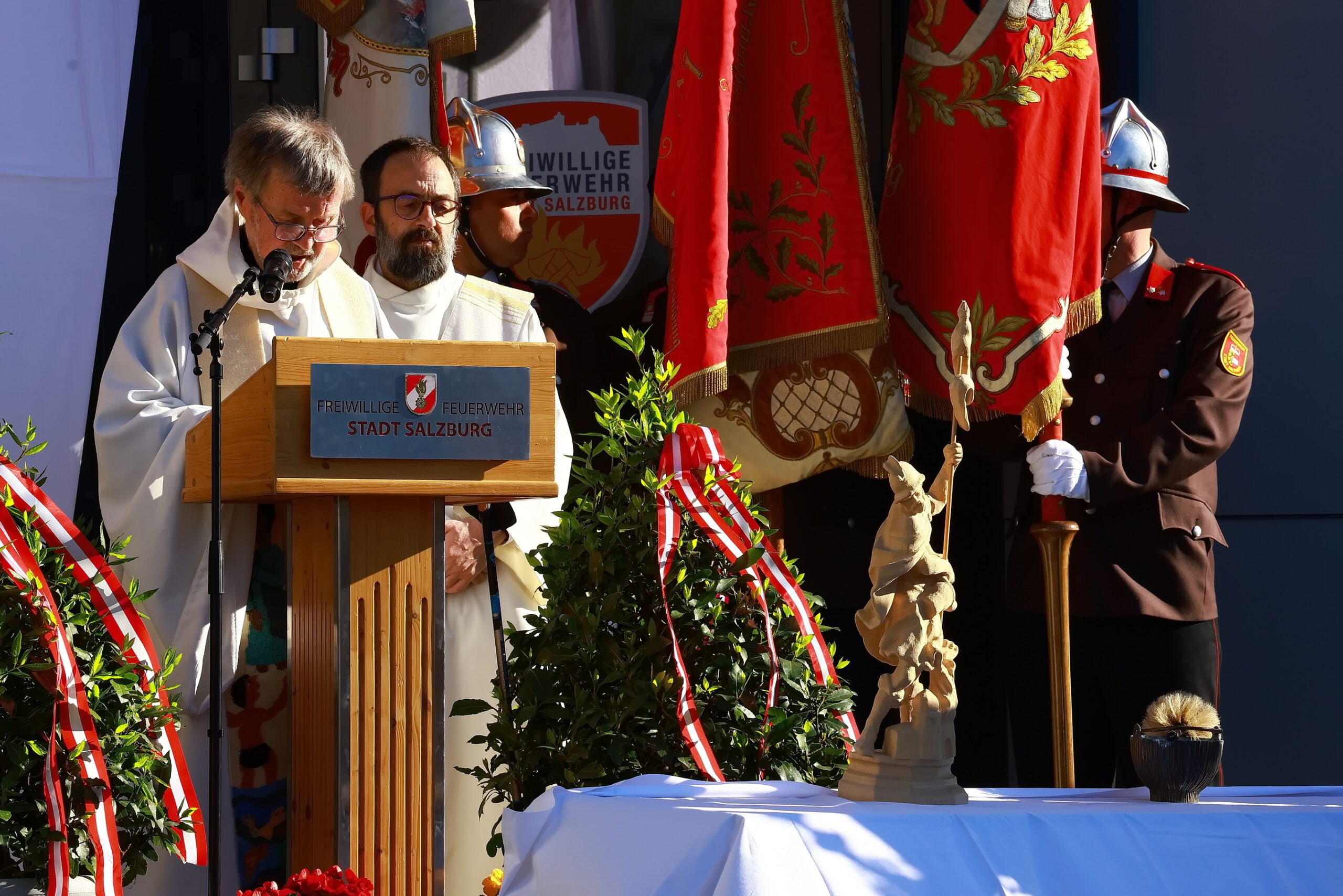 Ein wenig anders verlief die heurige Floriani – Feier 2026. Nicht wie gewohnt im Herzen der Stadt Salzburg, am Alten Markt, vor dem Floriani – Brunnen legte der Ortfeuerwehrkommandant der Freiwilligen Feuerwehr der Stadt Salzburg BR Mike Leprich seinen Rechenschaftsbericht vor, sondern wir feierten diesmal in Liefering.